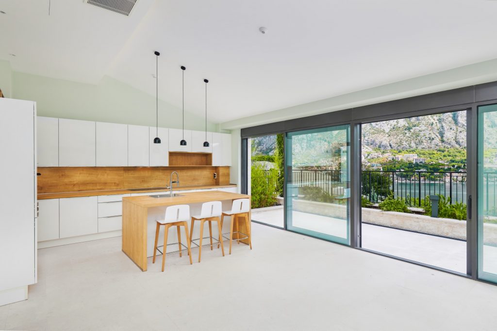 This spacious 5-bedroom contemporary villa in Kotor area features a luxuriously specified interior, sleek architectural design, and sweeping panoramic views across the Bay toward Kotor Old Town and the surrounding mountains. With floor-to-ceiling windows, clean lines, and open-plan living, the home is designed to maximize light, comfort, and connection to the natural surroundings.
