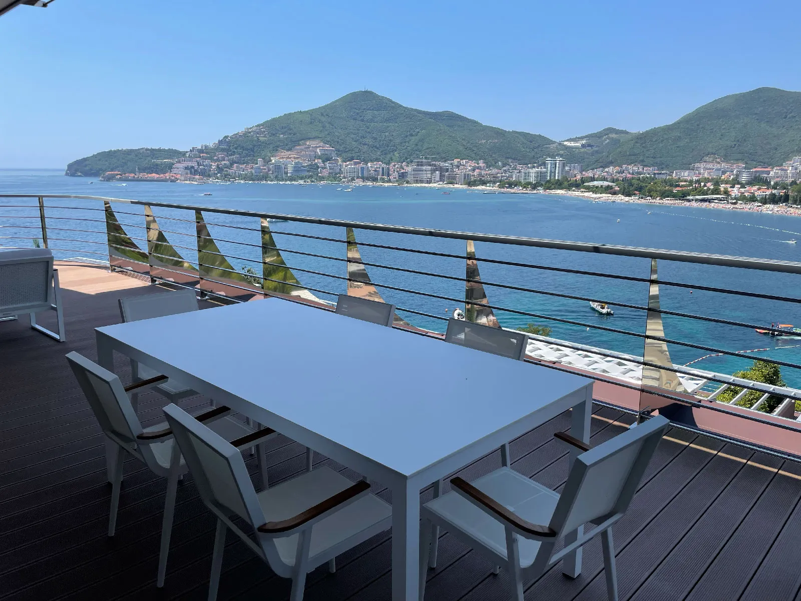 The apartment includes three large bedrooms filled with natural light and three elegantly finished bathrooms using the highest quality materials. The rooftop terrace is a perfect private retreat for relaxation or entertaining, offering uninterrupted views of the Adriatic Sea and Budva. Fully furnished with premium furniture and top-of-the-line appliances, the interior reflects sophisticated elegance and luxury.