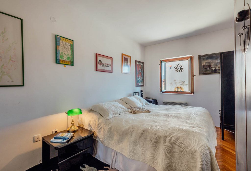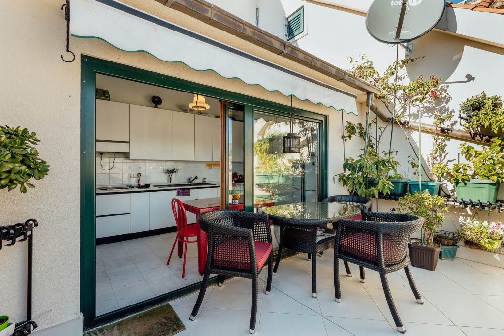 Spread across three levels, the home features warm, character-filled interiors and a bright top floor living space that opens onto a spacious terrace with views of the square, the church, and the Adriatic Sea. The ground floor includes two commercial spaces, offering excellent potential in one of the most frequented locations in the city.