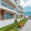 Finished with quality natural materials like stone and wood, the apartment is fully furnished and air-conditioned throughout. Bathrooms feature Grohe and Idevit fixtures, while elegant parquet flooring adds warmth and style.