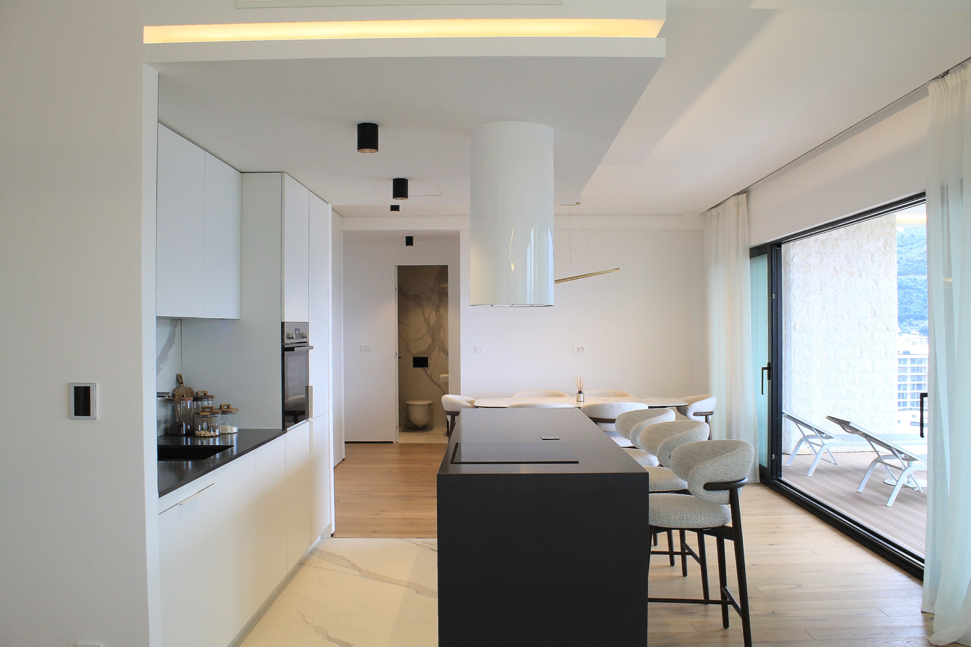 Located in the sought-after Vidikovac area of Budva, this stylish 124 m² apartment features three bedrooms, two bathrooms, and a private parking space. Set within a high-end gated complex with a pool, gym, and sauna, the residence offers comfort, security, and outstanding views of the sea, Old Town, and Sveti Nikola island.