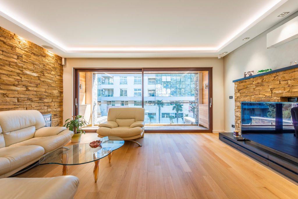 Located in the center of Budva, this exclusive 107 m² designer apartment offers refined living with cutting-edge smart home technology and premium furnishings. Featuring two elegant bedrooms, a spacious open-plan living area, and a high-end kitchen and dining space, the residence is crafted for both style and comfort.