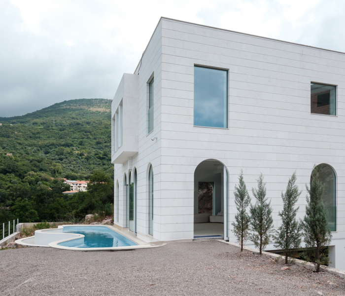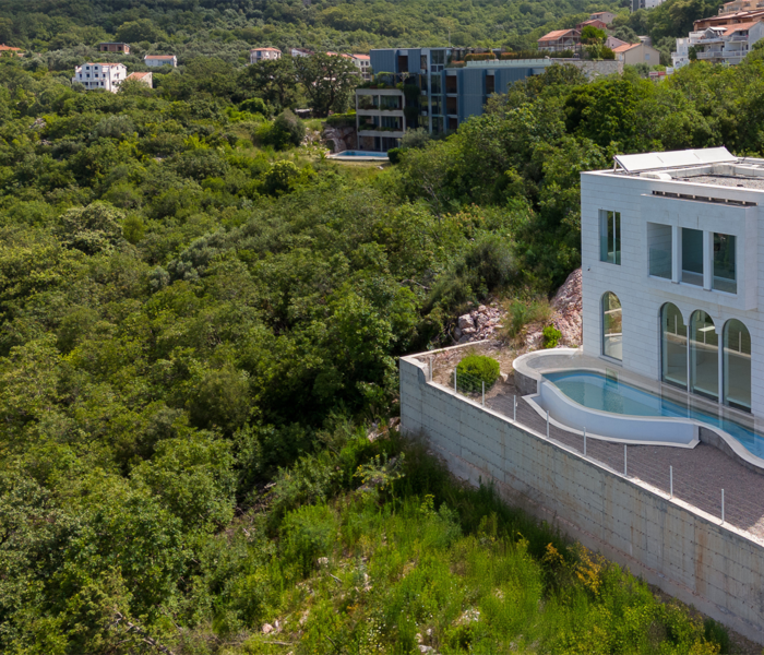 Pure Mansion is an exclusive architectural gem in Pržno, blending eco-technology with elegant design inspired by Venetian palazzos and modernist influences. Spanning 375 m² on a 607 m² plot across three levels, it offers sophisticated, functional living with panoramic views of the Adriatic, mountains, and iconic landmarks.