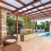 Set on a generous plot, the home spans approximately 423 m² and includes ten rooms, with four bedrooms, multiple living areas, a home office, and two large terraces. Designed for year-round comfort, it features underfloor heating, air conditioning, and a fireplace. Energy independence is ensured through solar panels with an eight-hour backup system, supported by two heat pumps (for the house and pool) and a full water filtration system.