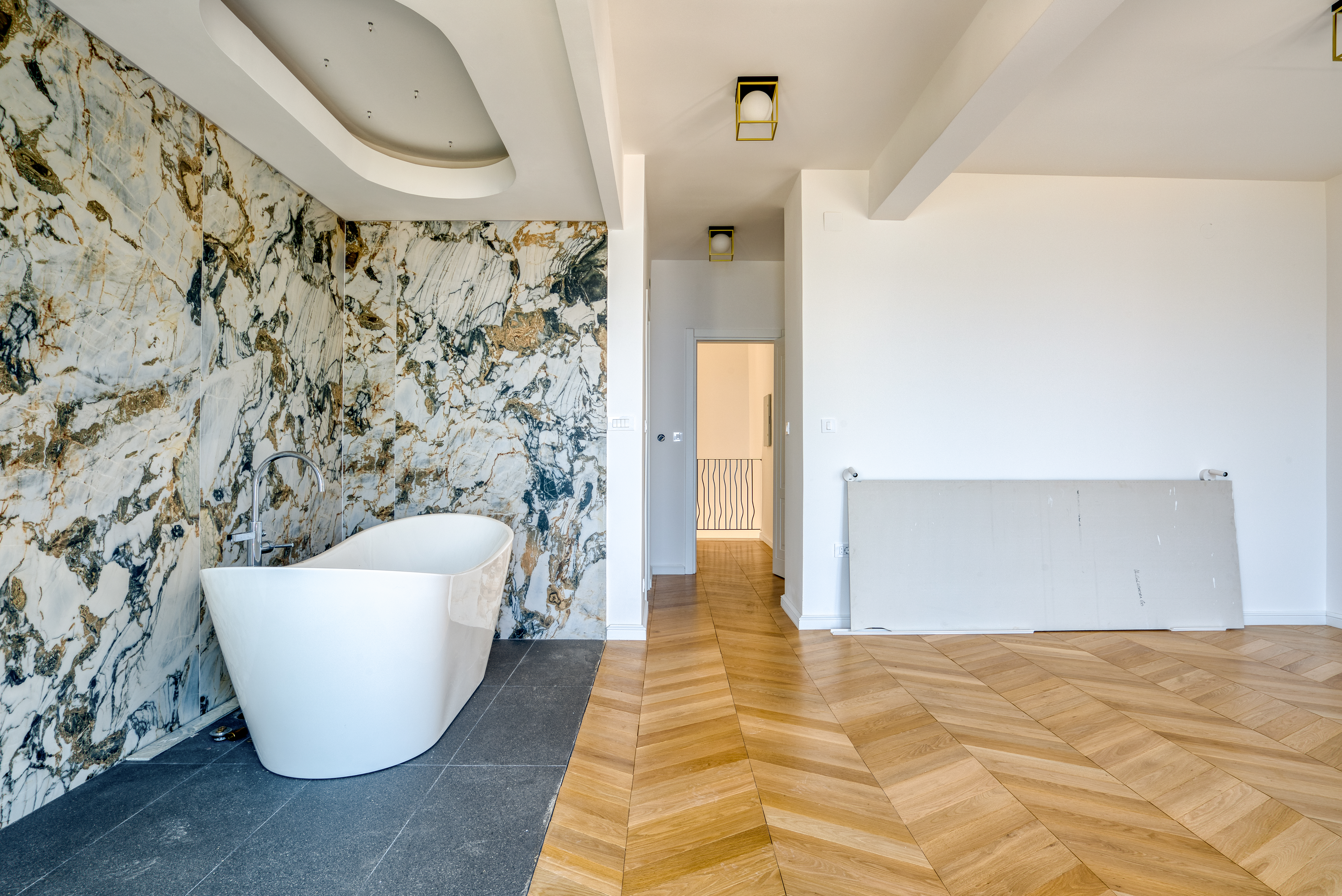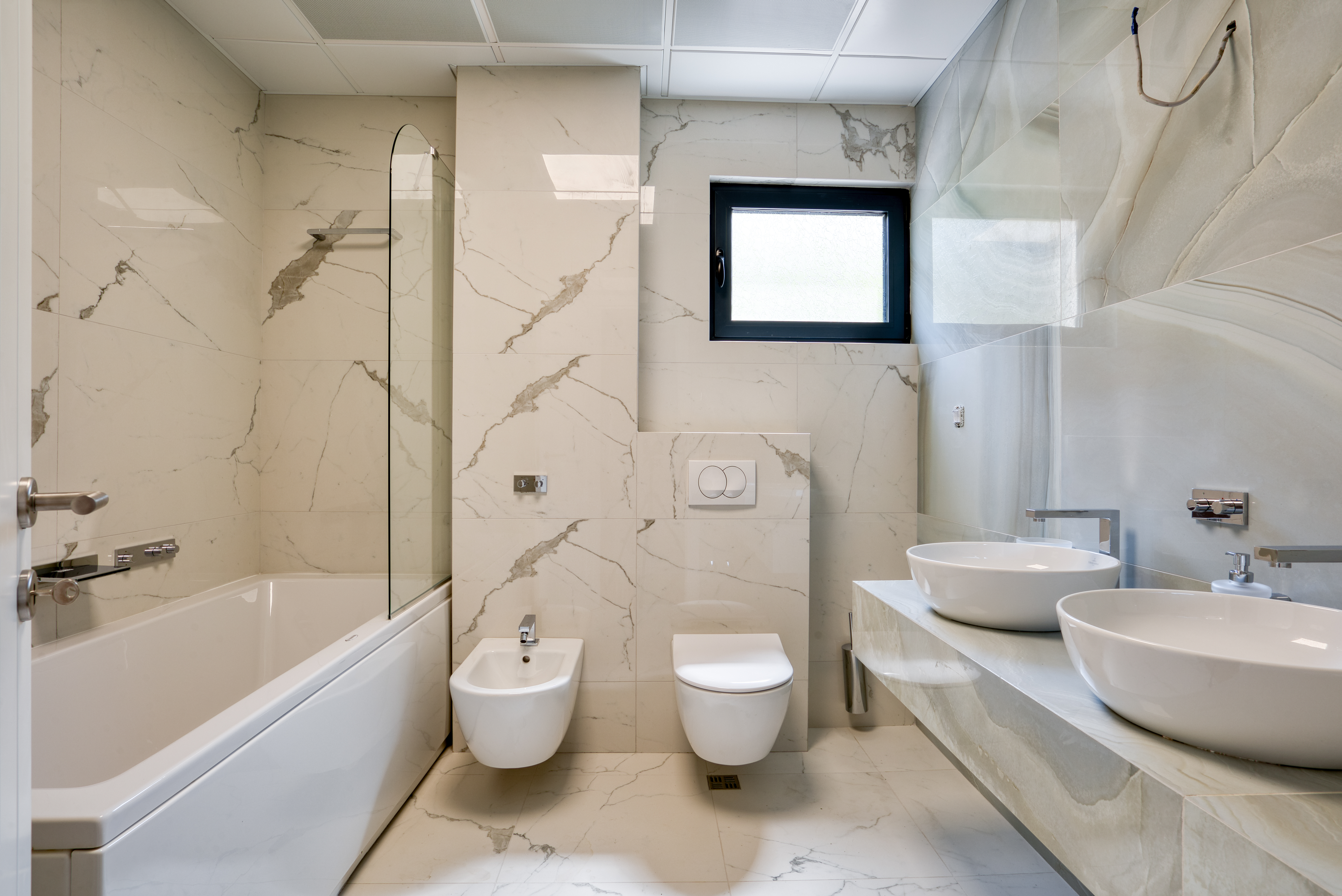 Constructed to the highest standards, the villa features premium materials such as Florim Italian ceramics, Villeroy & Boch sanitary ware, Dornbracht and Hansgrohe fixtures, high-end parquet flooring, aluminum exterior joinery, and designer interior doors. The elegant Maljat stone façade adds timeless character and durability.