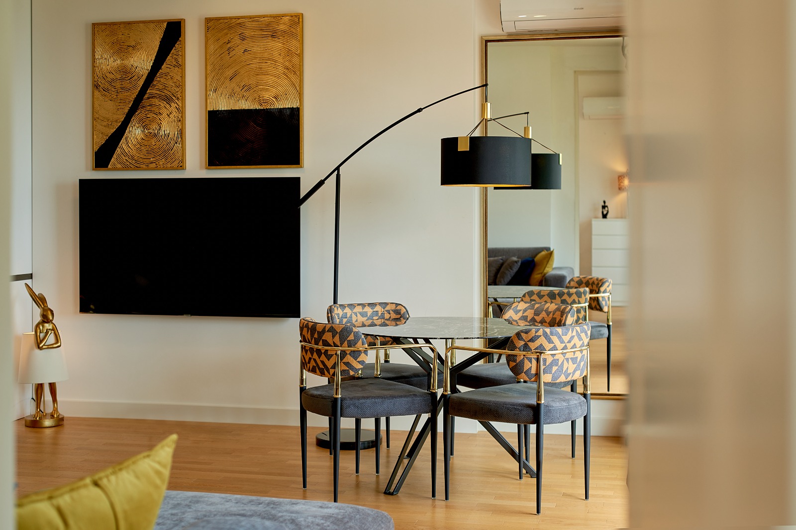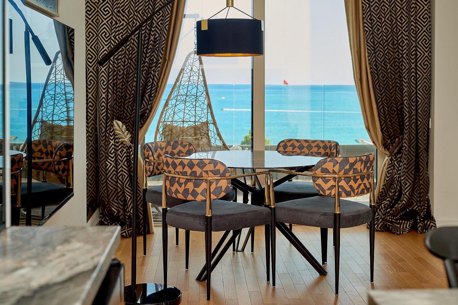 The apartment has been thoughtfully designed with a high-end interior that blends modern aesthetics with functionality. Fully furnished and equipped with premium materials and finishes, it is ready for immediate move-in. The layout includes a welcoming entrance hallway, a stylish kitchen with a dining area that opens onto a spacious terrace, and a bright bedroom with panoramic windows and direct terrace access. A walk-in wardrobe and a contemporary bathroom complete the space, ensuring both comfort and practicality.